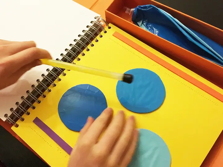 Integrating braille and large type with brightly coloured embossed images. The stickers, as trivial as they might seem, are a good example of how it is possible to design something well for both sighted and visually impaired children. - Tactile stickers with braille