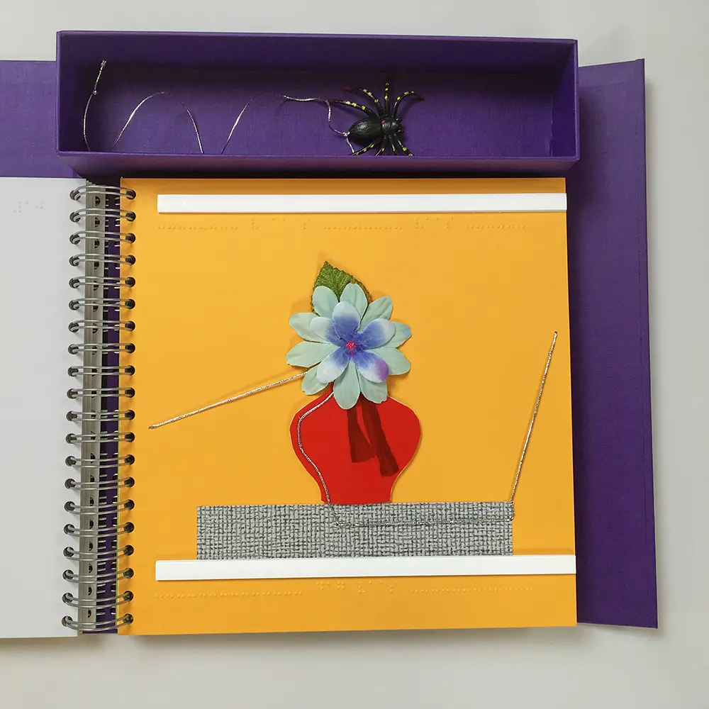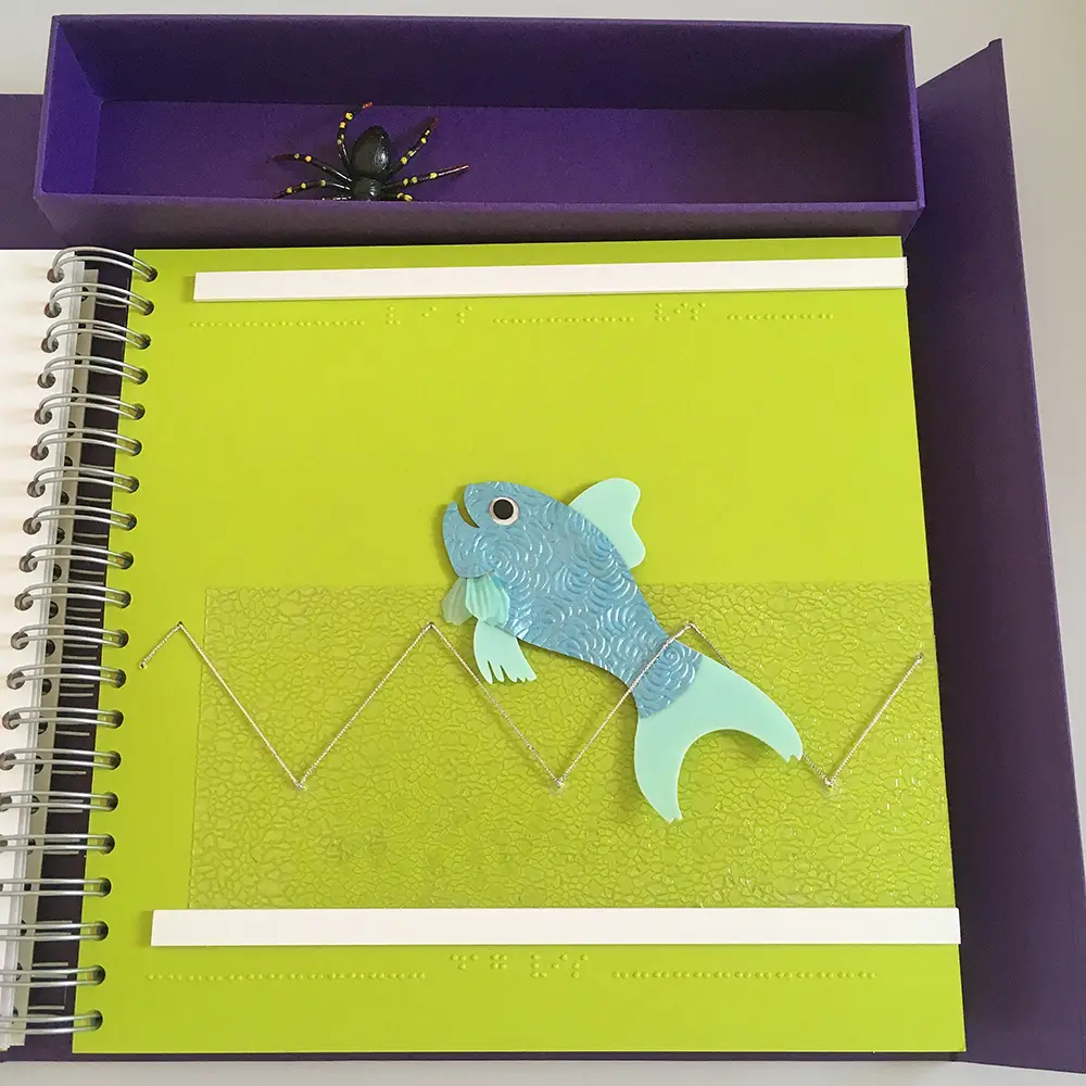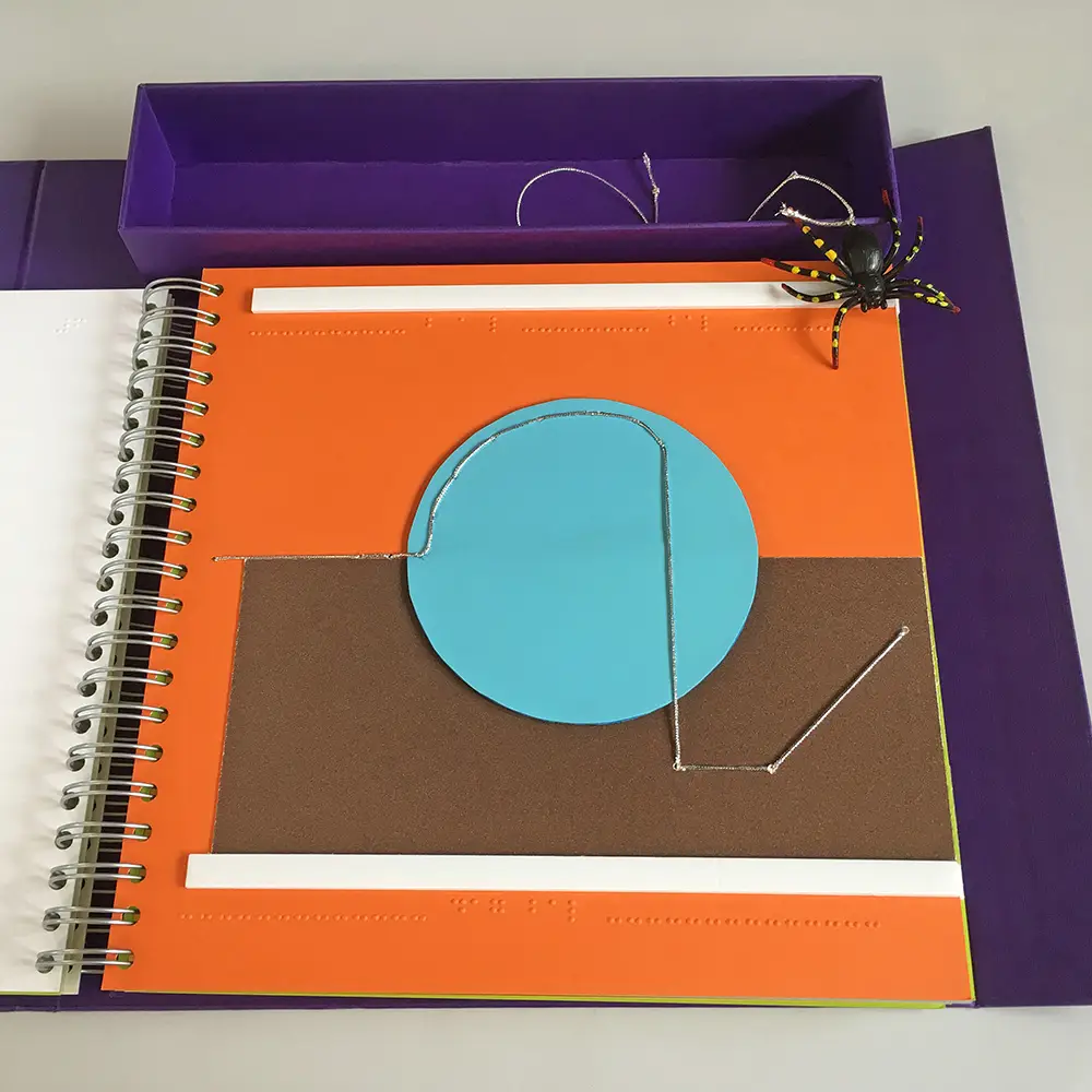 The cover and spine are screen printed with the title in Braille and a tactile drawing.