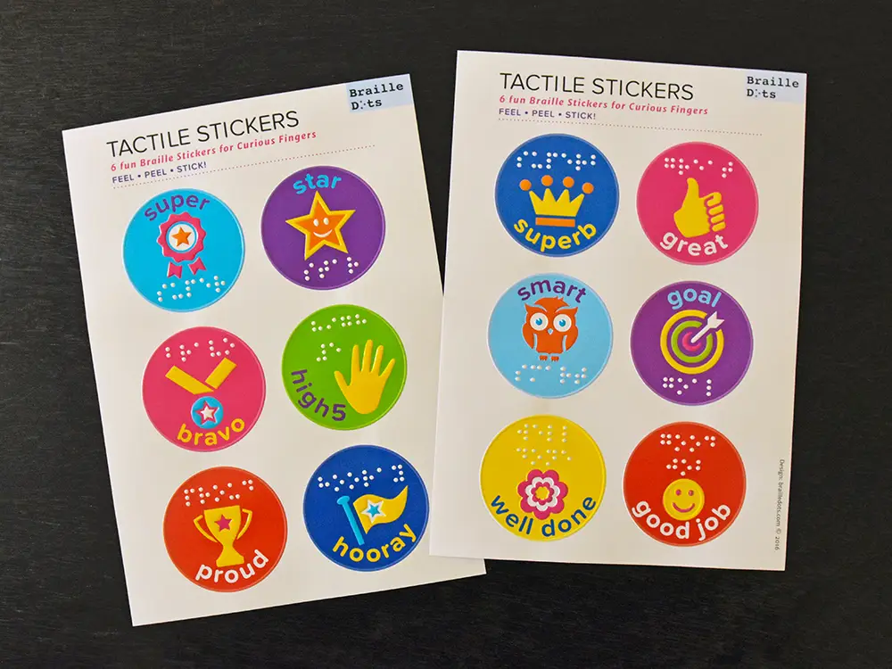 It’s fun for kids learning braille to read the motivational phrases on the stickers.