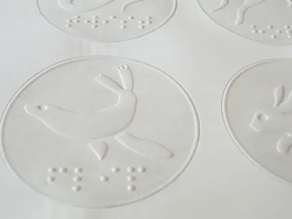 The embossing can also be felt on the backing sheet. The edges of the stickers are raised to help navigation.